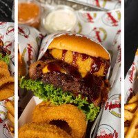 Single patty with cheese, bacon, onion rings, and BBQ sauce.