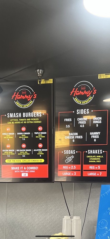 Introducing Hammy's Smash Burgers, a burger joint located at 4388 W Shaw Ave Fresno, CA 93722. This casual and trendy spot offers a variety of options for lunch, dinner, and dessert. They provide delivery, takeout, and reservation options, along with catering services. The menu includes limited vegetarian options and they have a selection of alcohol for those looking to enjoy a drink with their meal. The atmosphere is gender-neutral with outdoor seating and dog-friendly accommodations. Customers have praised the tasty burgers and sides, with some highlighting the onion rings as a standout. While some reviews mentioned minor issues with service or pricing, overall, Hammy's Smash Burgers is recommended for a quick and fulfilling meal experience.